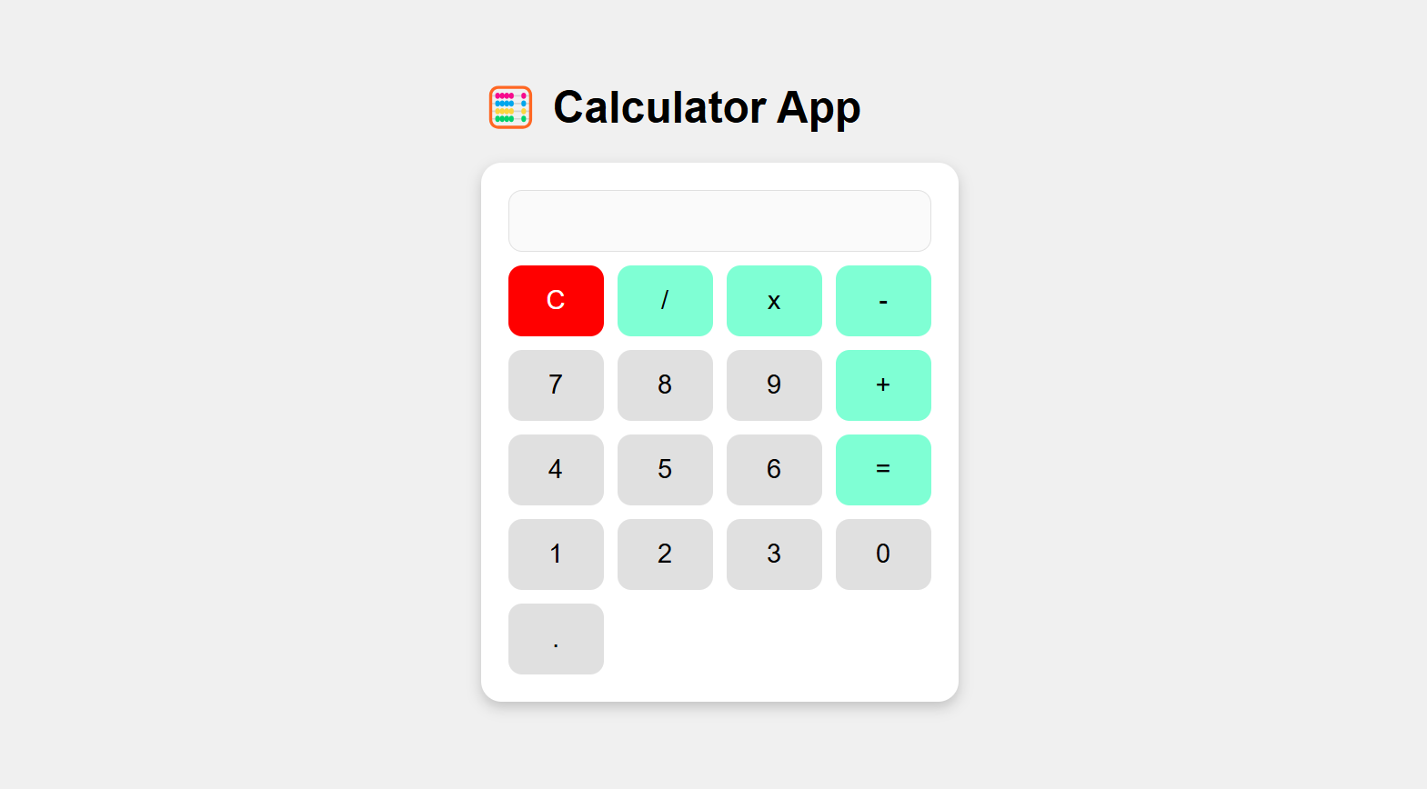 A simple calculator app built with HTML, CSS, and JavaScript. It performs basic arithmetic operations like addition, subtraction, multiplication, and division.